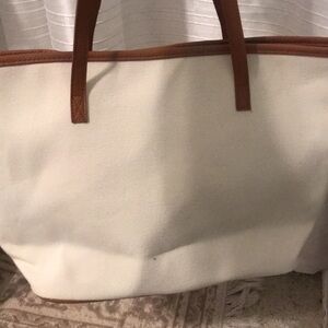 The tote is nylon lined and has a inner magnetic piece inside the lining that allows the bag to be fastened shut