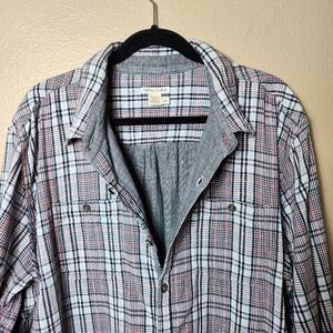 carbon2cobalt Mens Double Cloth Gray Plaid Buttonfront Cotton Shirt-Size XXL