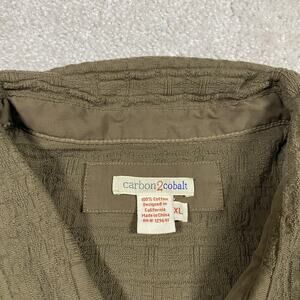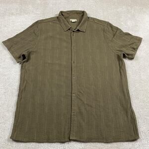 carbon2cobalt Shirt Mens XL Olive Green Textured Crinkle Short Sleeve Button Up