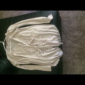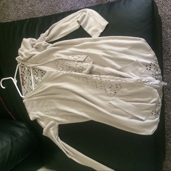 really hard to get a good picture of this cardigan but if you want i can take more. it’s longer in the front than in the back with pockets on each side. perfect condition