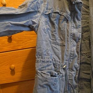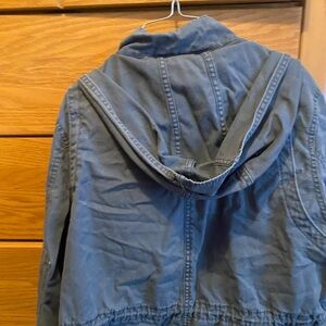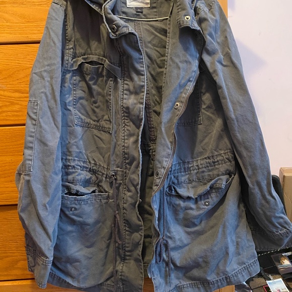 stylish military jacket. Features a hood and multiple pockets. Ideal for outdoor adventures.