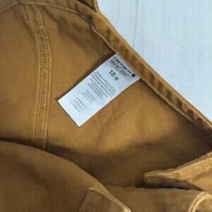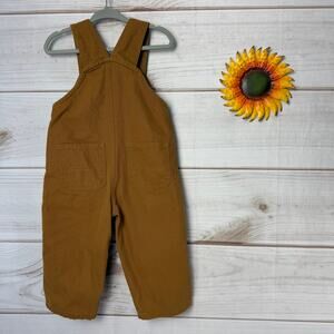 item: carhartt ruffle front overalls size: 18M condition: gently used material: cotton color: brown