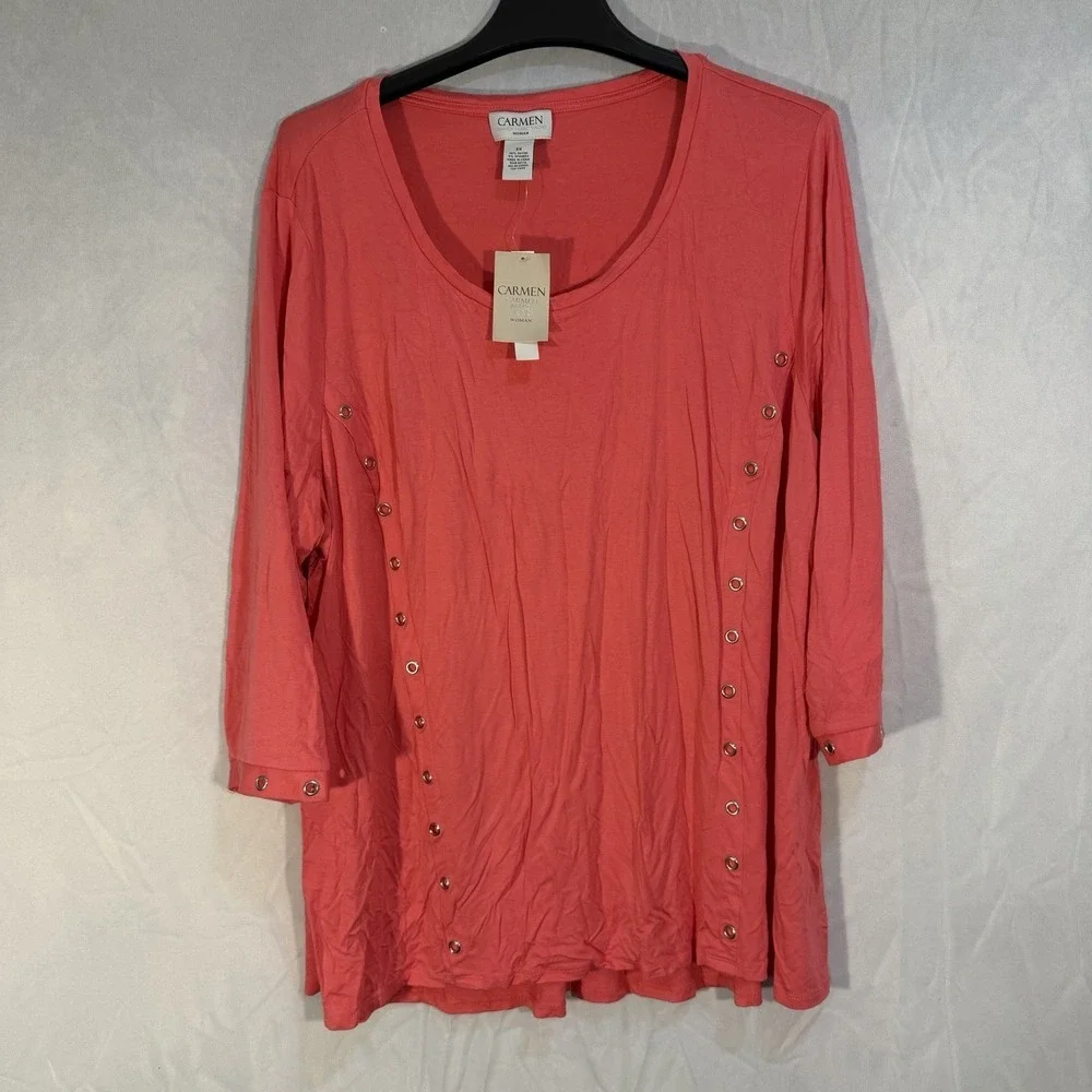 carmen marc valvo Tunic Studded Blouse Pink 3X Rayon NEW Summer Top Comfort Soft