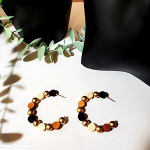 cartagena Goldtone and Wood Bead Hoop Earrings