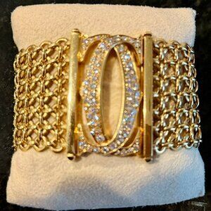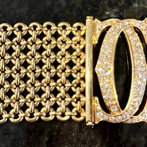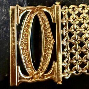 Discover the exquisite vintage Cartier Penelope bracelet, crafted from luxurious 18k gold. It has seven elegant rows of interlinked openwork circles form a captivating design that gracefully adapts to your wrist, combining stunning beauty with remarkable flexibility. A true statement piece to cherish!The clasp truly stands out, showcasing a stunning double “C” motif elegantly framed in gold and adorned with sparkling round diamonds. With its striking 7-row design, this bracelet makes a bold statement, while the open pattern adds a light, feminine touch. The diamond Penelope bracelet is a timeless treasure and an iconic Cartier masterpiece that everyone covets!The bracelet is stamped and numbered ( with the Cartier signature, a serial number, and French hallmarks for 18k gold).