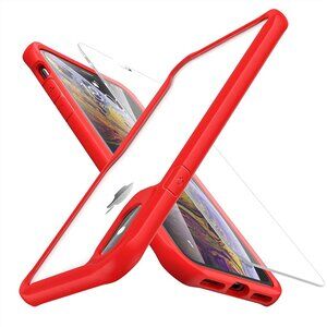 case for iPhone X/XS with 2 Tempered Glass Screen Protectors red and clear