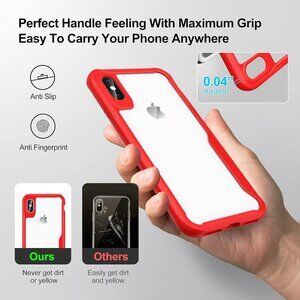 Designed for iPhone X/XS Case by ORETECH, Red, includes 2 tempered glass screen protectors. Transparent, durable, and stylish protection for your iPhone X/XS.