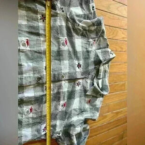casey and max Button Shirt Blouse Women’s Large Plaid Sparkly Embroidered Santa