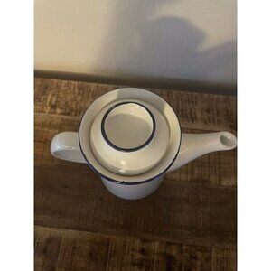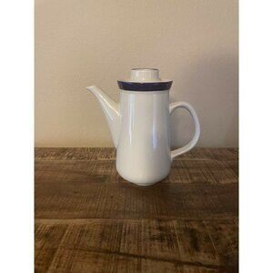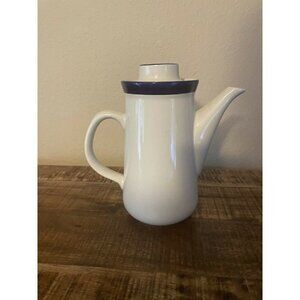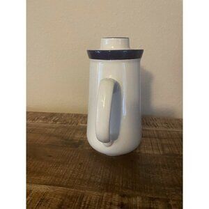 casual classic stoneware hand painted tea pot thailand Pitcher White Blue Stripe. Condition is "Used". Shipped with USPS Parcel Select Ground.