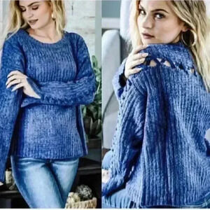 SOFT CHENILLE SWEATER WITH LACE BACK DETAILING