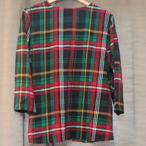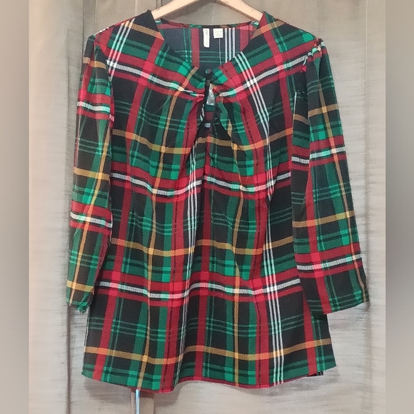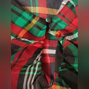 green black and red plaid shirt with a Keyhole front cut out Ruffles on the shoulder r1