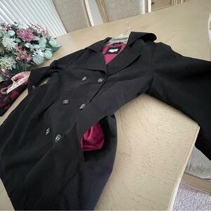 cato black trench rain coat in pea coat style flowy (size tag missing L )