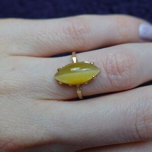 a dainty ring with an impactful stone, the iridescence is hard to capture on camera, she's a beauty for sure