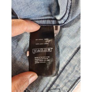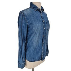 celio Womens Button Up Shirt Size S Blue Chambray Long Sleeve Curve Hem 44P