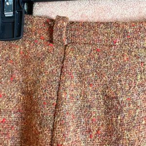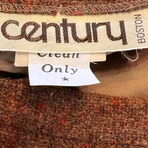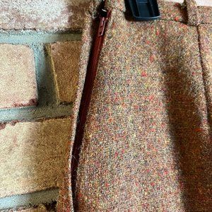 Beautiful century Boston brown marbled wool A-line Skirt. This is a classic! Small hole in the back is less than 1/8' wide and is about 1/4" long. There is lining behind the hole so it does not seem noticeable.
