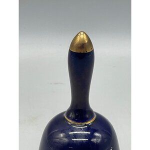 ceramic cobalt blue bell Japanese porcelain gold handle tip floral carriage READ