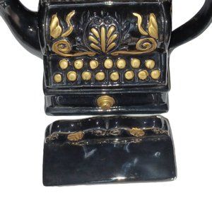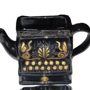 ceramic coffee creamer pot, teapot, black cash register design, 5 inches tall x 15 inches wide. comes with lid,