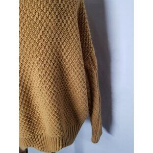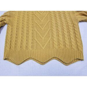 ces femme Sweater size small chunky cable knit mustard mango fuzzy turtle neck