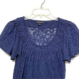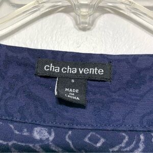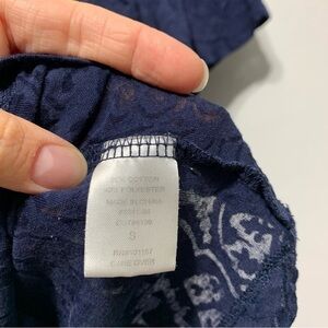 cha cha vente Navy Blue Floral Burnout Blouse Top y2k Sheer size Small
