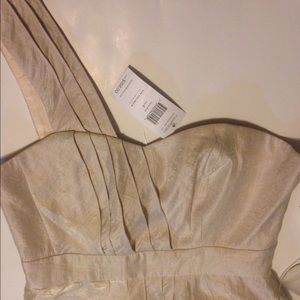 champagne ruffle dress One thick shoulder strap , one thin shoulder strap