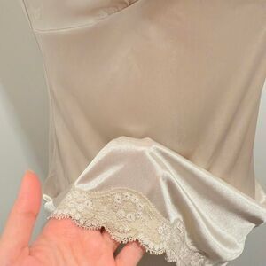 ♡ champagne satin + lace-trim mini slip dress • vintage nightie ♡