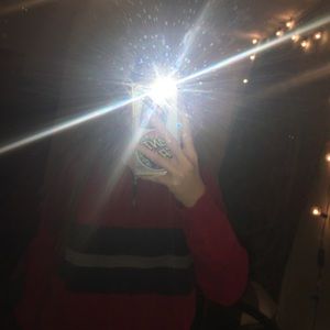 red ralph lauren pullover with navy and grey stripe size small fits a little big