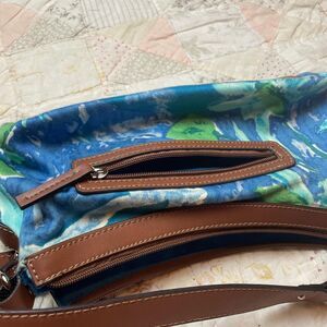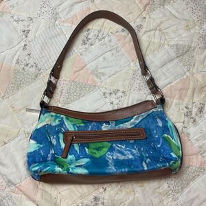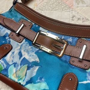 chaps blue and brown medium sized buckle shoulder bag with watercolor flowers