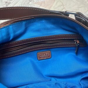chaps blue and brown medium sized buckle shoulder bag with watercolor flowers. excellent condition see measurements. :)