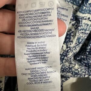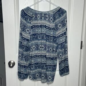 chaps boho patchwork aztec peasant blouse blue white xl
