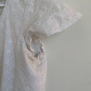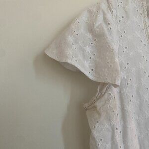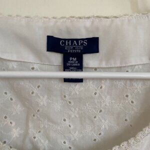 chaps eyelet lace white cute button-down peplum blouse - size medium petite (PM)