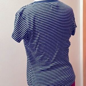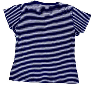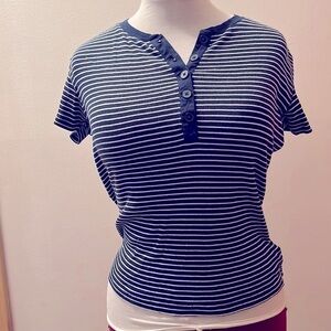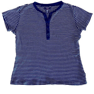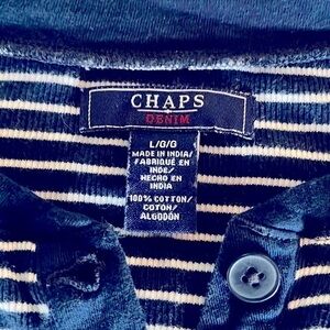 Chaps striped top size Large. Navy blue and white with buttons for women. Gently worn.