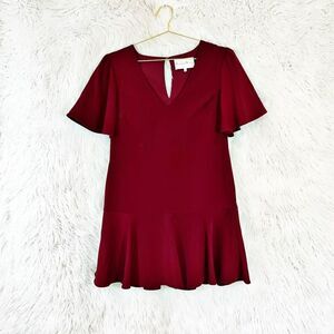 Charles Henry flutter sleeve drop waist dress, size small in burgundy.