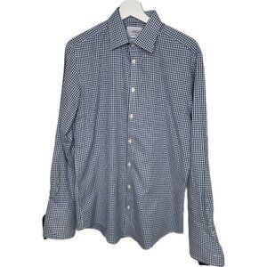 charles tyrwhitt Plaid Button Down Shirt Blue Extra Slim Fit French Cuff 15.5/33