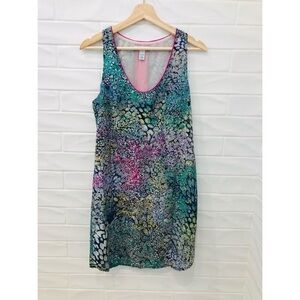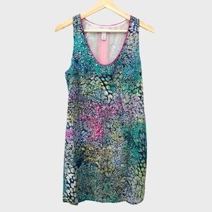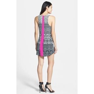 Flowy printed dress with contrast hot pink stripe down the back. Dress measures: 27" from neckline to bottom of dress (on size small). Fun with wedges for a vacation look!