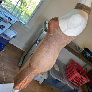 Charlotte Russe XS Formal Party Dress NWT. It’s a glamorous copper glitter color with built in Choker collar. Night fitting with stretch. There was a tiny flaw in the back around the zipper which I have repaired. See pictures & video. Really sexy party dress. Measurements are in the pictures. Thanks & Happy Poshing.