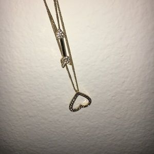 long gold chain (about 15in) with a diamond heart hanging lower than the diamond arrow
