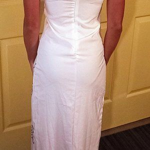 size 08 size M. fits like small. Original designer purchased piece with tag and mid length back zipper.