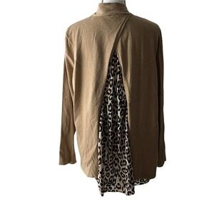 chico's 3 (XL) Brown Open Front Cardigan Leopard Peek-a-Boo Panel Back Sweater