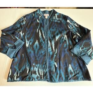 chico’s Chicos jacket size 1 Medium Blue Abstract Pattern Blue Lining Animal