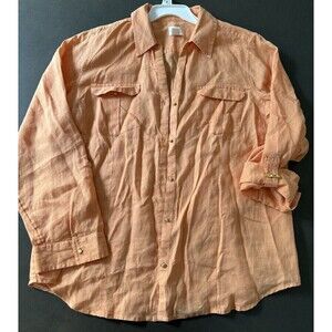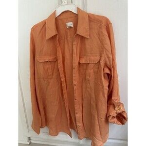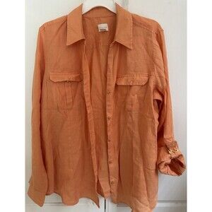 chicos linen shirt orange gold button down roll tab sleeves 100% linen size 2/ L