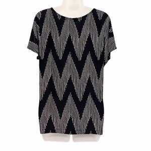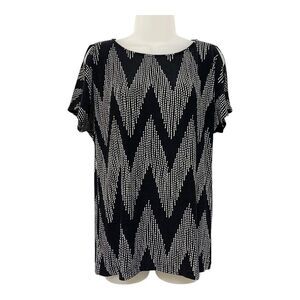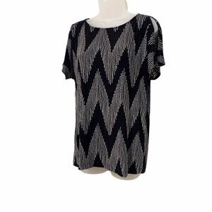 chicos travelers Short Sleeve Cold Shoulder Black Cream Slinky Top Size 1 M/8