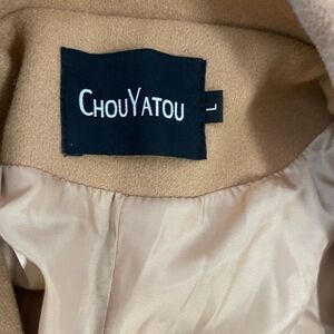 chouyatou Women Elegant Notched Collar Double Breasted Wool Blend Over Coat L
