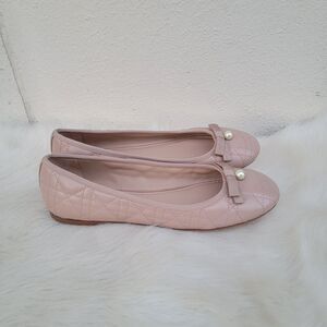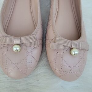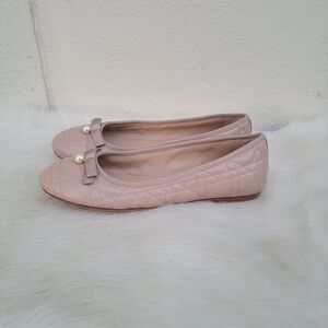 christian dior quilted tan leather pearl bow ballet flats Eur sz 40 Preppy