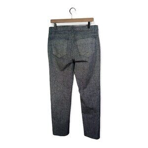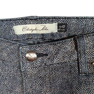 These jeans by Christopher Blue are a skinny mid-rise ankle crop jean with a navy microdot pattern. They have a button/zip closure, 5 pocket silhouette and are made in the USA. These jeans are in excellent condition and are free from any visible flaws. All appropriate tags are accounted for.