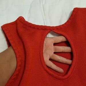 Christopher Shannon sleeveless red sweater size Small. the back has a keyhole but there is no button. please see the pictures for measurements because even though it is small it is not tiny. a lot of fun details.