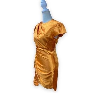 cinq a Sept Natalia Short Sleeve Satin Mini Dress in Citrine Orange | Size 0