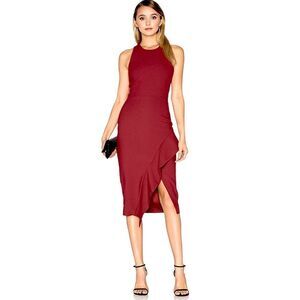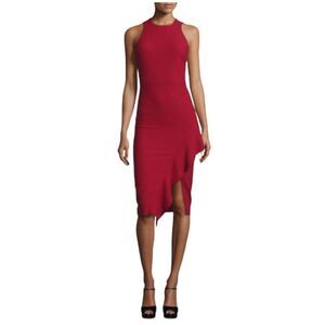 ☀️❄️cinq a sept Piper Ruffle Midi Asymmetrical Dress in Pomegranate Sz 4