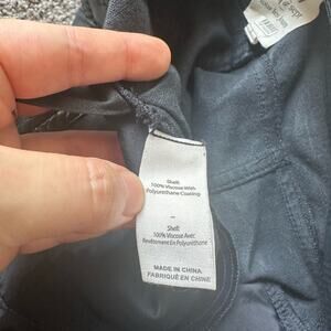 note: some imperfections and a small patch of fabric missing on front and back leg hems (shown)