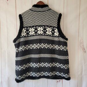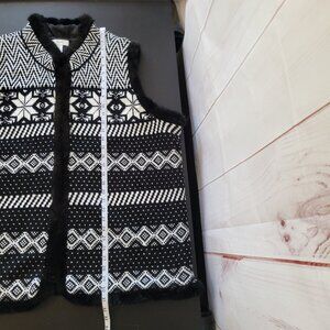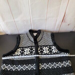 cj Banks Women’s Vest, 3X, Black/White/Faux Fur, Button Front, Winter, Snowflake, Warm Knit Vest, Casual or Dress