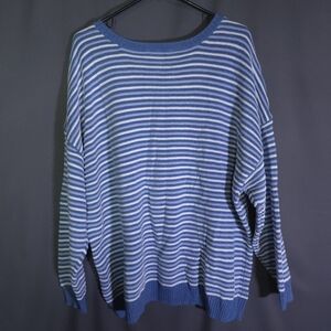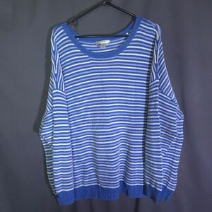 cj banks Scoop Neck Sweater Blue Striped Size 3X Nautical Coastal Preppy
